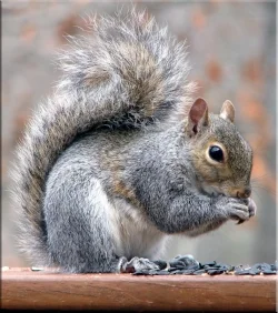 The gray squirrel sits innocently on the deck railing. His tail is erect like an antenna searching for danger. The suet feeder sways gently behind him and is a sure sign that he has been up to no good. I linger at the window hoping to catch him in the act. Like a child contemplating mischief, he hops awkwardly back and forth tail twitching. He dives into a planter for a bit perhaps hoping I will lose interest. Eventually, he leaves the deck in a jerky gallop. I hope he is headed for his treetop home but lose sight of him in the dry leaves.