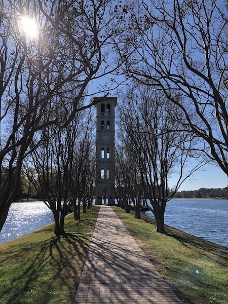 The visit to our alma mater was planned for months, but the decision to ride bikes to the campus from our hotel was unusually spontaneous. After gearing up at a local bike shop, my husband John and I took off down Greenville’s Swamp Rabbit Trail hoping to find some familiar sights as we pedaled towards the campus of Furman University. The trail took us to the back-door of campus rather than the stately tree lined entrance that lures prospective parents and students. As I stared across the lake at the still stunningly beautiful campus, a mixture of memories came into focus.